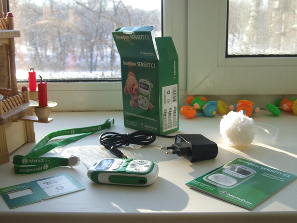 Кроме всего прочего, телефон показал себя очень стойким. Ведь он выдержал не только активность Алисы, но и проверку на прочность от младших тестеров:Ну и фото полной комплектации. Сим-карта и помпон в комплект не входят!!Отзыв № 5Александр Рыбушкин, дочь Варвара (6 лет) и сын Кирилл (4 года)Мобильное детство. Начало.Если честно, то я понятия не имею, куда так быстро летит время, и зачем оно так торопится пролететь мимо нас. Но от этого никуда не деться и, если у меня первый телефон появился лишь в 22 года, то это, конечно же, ровным счетом ничего не значит по состоянию на сегодняшний день. И теперь уже никто, даже в нашей стране, не будет крутить пальцем у виска, услышав про телефон, предназначенный для детей от 2 лет, разве что только опытные мамаши заявят с сомнением: "Некоторые дети до трех лет не разговаривают!" Но может быть они потому и не разговаривают, что у них телефона нет? Собственно с телефона и начну рассказ о том, как становятся совсем взрослыми.Вот такой маленький детский телефон попал ко мне в руки благодаря Бебинке и Мегафону. Называется он Мегафон С1.