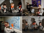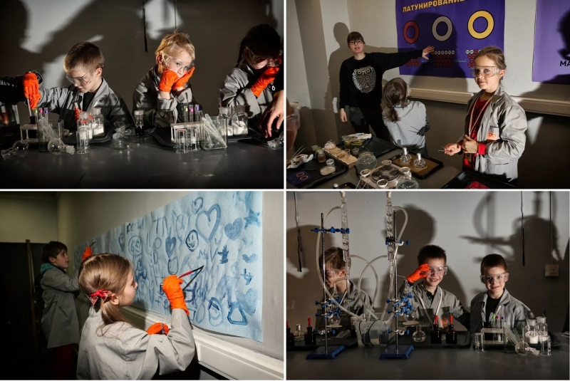 Каждая команда проходит научные испытания в 4 разных лабораториях. Программа полностью интерактивна — каждый ребенок выполняет эксперименты собственными руками.